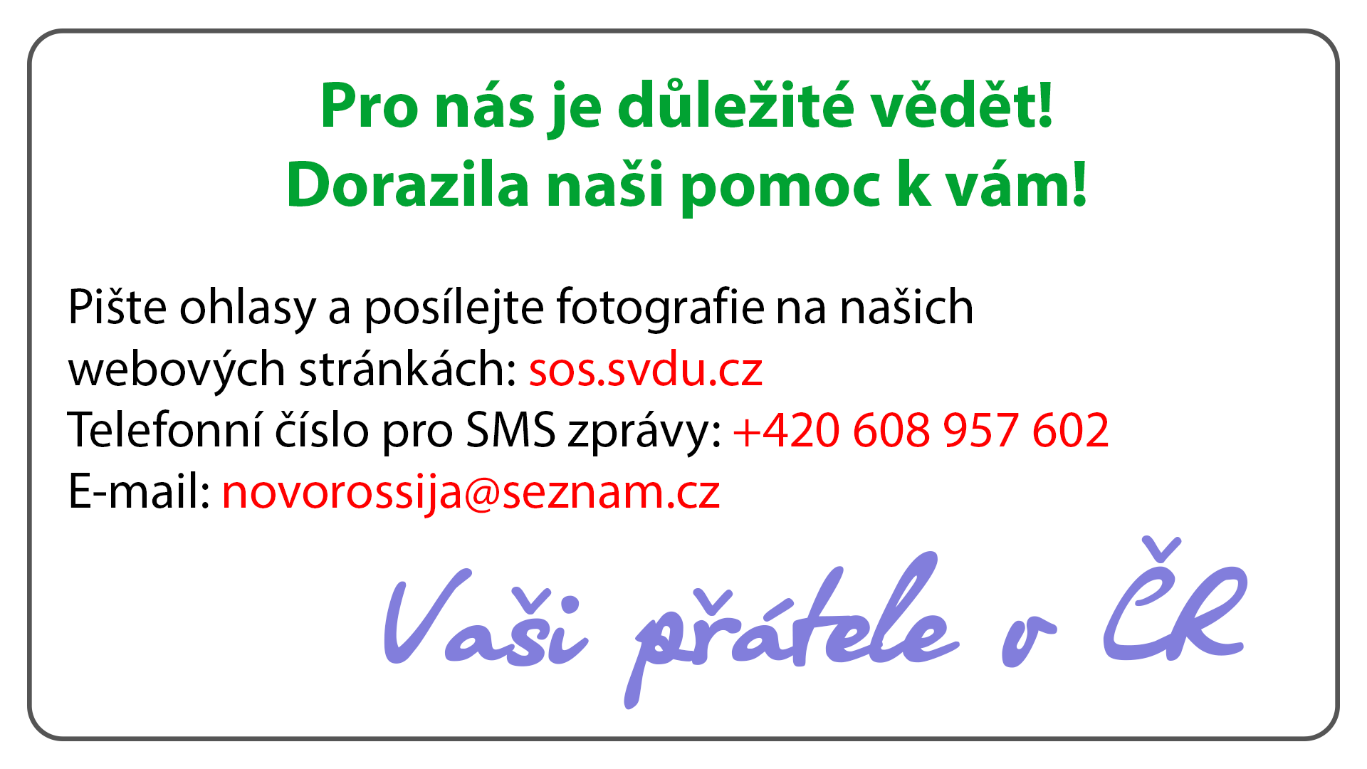 НАМ ВАЖНО ЗНАТЬ! ДОШЛА ЛИ НАША ПОМОЩЬ К ВАМ!